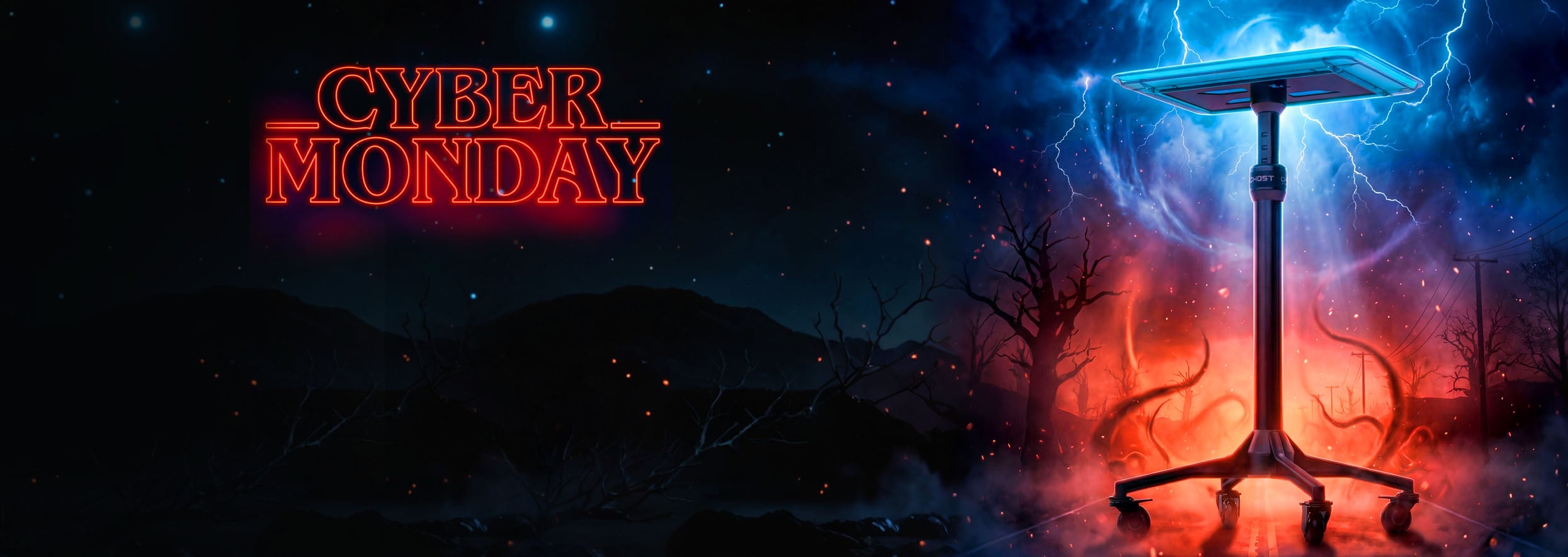 The Ghost Tray base offers an industry-first, foot lever actuation for hands-free height adjustment (24in - 36in).