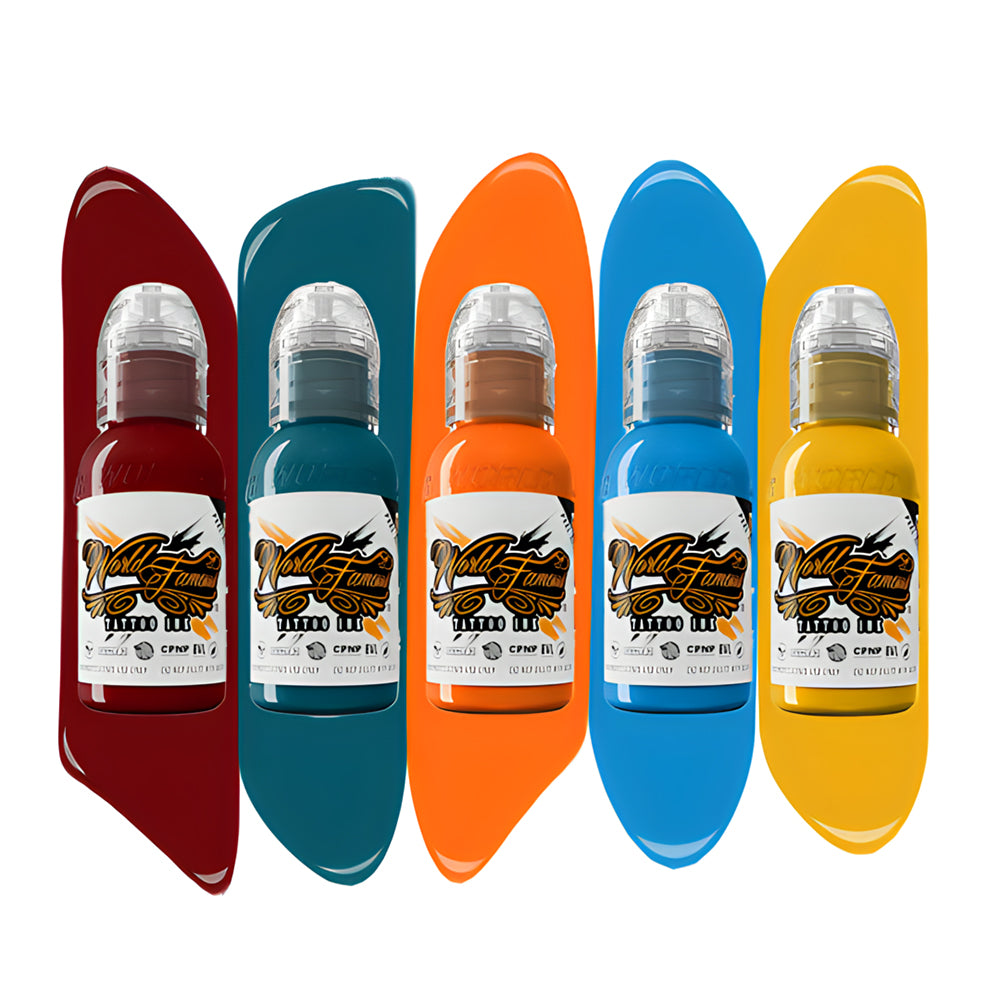 The Neo-Traditional Mini Set from World Famous Tattoo Inks is completely vegan and never tested on animals. Explore your artistic abilities with this dynamic set of 5 must-have ink shades, delivering vibrant and stylish results to enhance your neo-traditional designs.